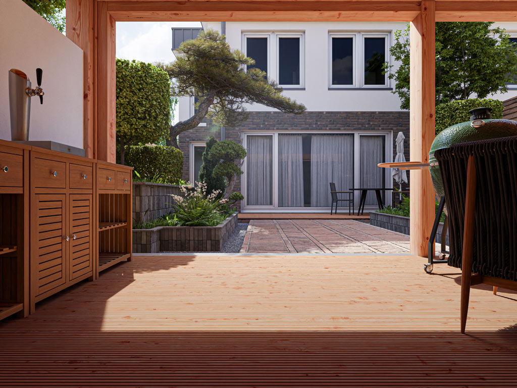 Une lame de terrasse avec deux aspects. Avec la lame réversible flexible, vous n'avez pas encore à décider lors de l'achat quel profil vous convient le mieux. Les lames striées séduisent par leur aspect attrayant, leur beauté intemporelle et sont toujours à la mode. La surface grossièrement striée a un effet antidérapant et rend les lames de terrasse particulièrement praticables.