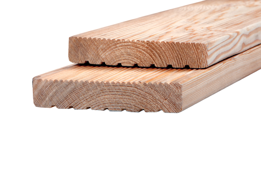 Le mélèze est l'un des bois de conifères locaux les plus durs. Avec sa teinte jaune à brun orangé et sa veinure prononcée, ce bois donne une impression de vivacité. Le bois particulièrement massif du mélèze est très résistant à l'usure et même aux acides. Les intempéries n'ont donc pas d'incidence sur sa durabilité, qui est bonne à moyenne. La densité élevée du bois le protège également contre les insectes xylophages et les champignons. Grâce à sa grande élasticité, le bois est facile à travailler. Il est néanmoins recommandé de pré-percer pour obtenir un aspect propre. Humidité du bois environ 18%, +/- 2%.