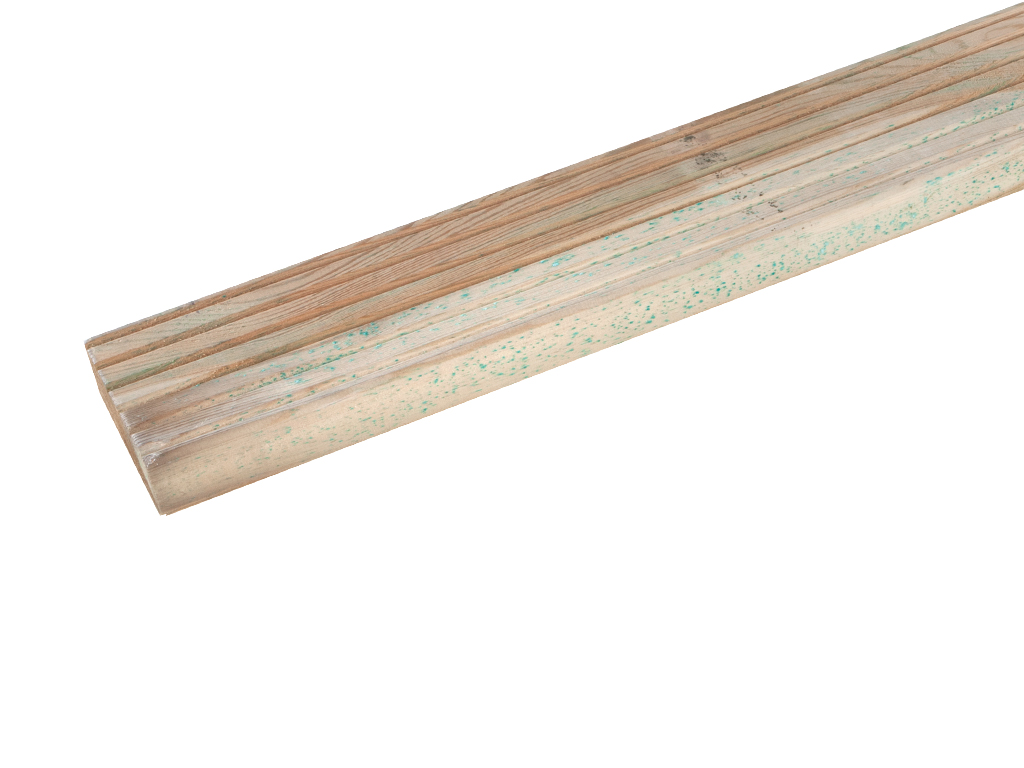 Ces lames sont imprégnées en autoclave (bois KDI). Ce procédé de protection du bois ferme les pores du bois avec des sels contenant du cuivre et le rend plus résistant aux insectes, aux champignons et aux moisissures. Cela permet d'augmenter sa durabilité jusqu'à 10 ans par rapport aux bois non traités. La réaction des résines dans le bois avec les sels peut donner lieu à de petites taches blanches et vertes (les fameuses efflorescences salines). Avec le temps, ils se décolorent sous l'effet des UV. Alternativement, ils peuvent être brossés ou recevoir une finition supplémentaire avec un vernis ou une lasure.