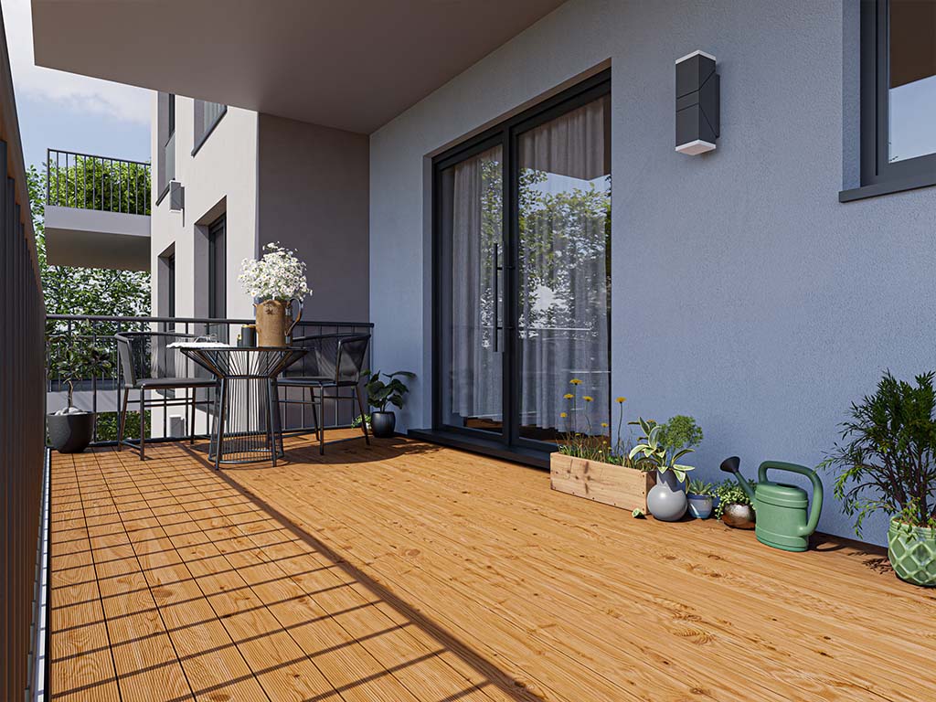 Le bois travaillant différemment selon les essences, il est nécessaire de faire correspondre le matériau de la sous-structure et celui des lames. Le facteur déterminant est la classe de durabilité du bois, qui ne doit pas varier de plus d'une classe. Pour les lames en bois dur, il faut utiliser du bois de construction en bois dur, pour les lames en bois de conifères, une ossature en bois de conifères est suffisante. Comme alternative au bois de construction, vous pouvez installer des structures en aluminium. Elles sont indéformables et durables, et conviennent à toutes les essences de bois, y compris les lames WPC.