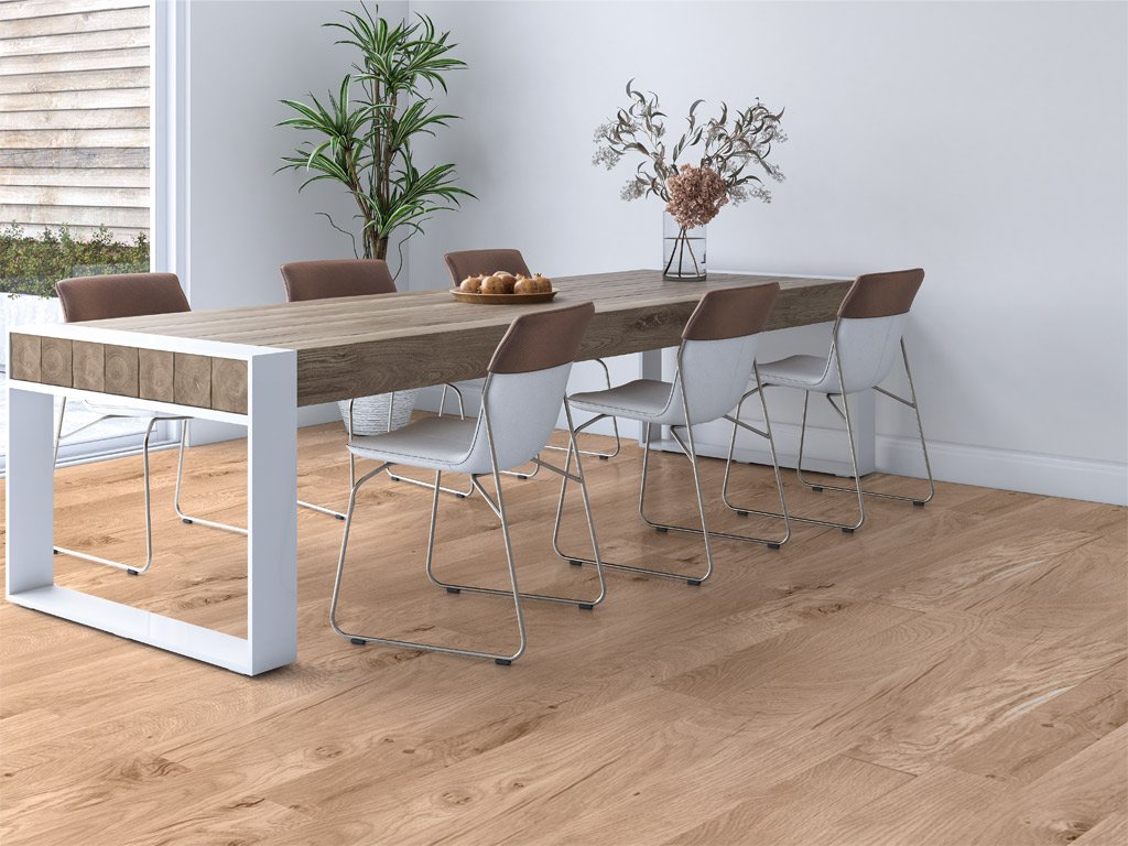 Les lames en bois massif sont d'une beauté pure et incomparable en raison de leur caractère naturel et individuel. Ce parquet en chêne séduit par son aspect classique et élégant et s'intègre à merveille dans les styles d'aménagement modernes et traditionnels. Ces lames de luxe n'impressionnent pas seulement par leur aspect. Un sol en chêne s'adapte de manière flexible à l'air sec et à une humidité de l'air plus élevée.