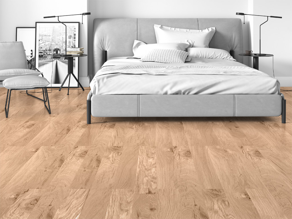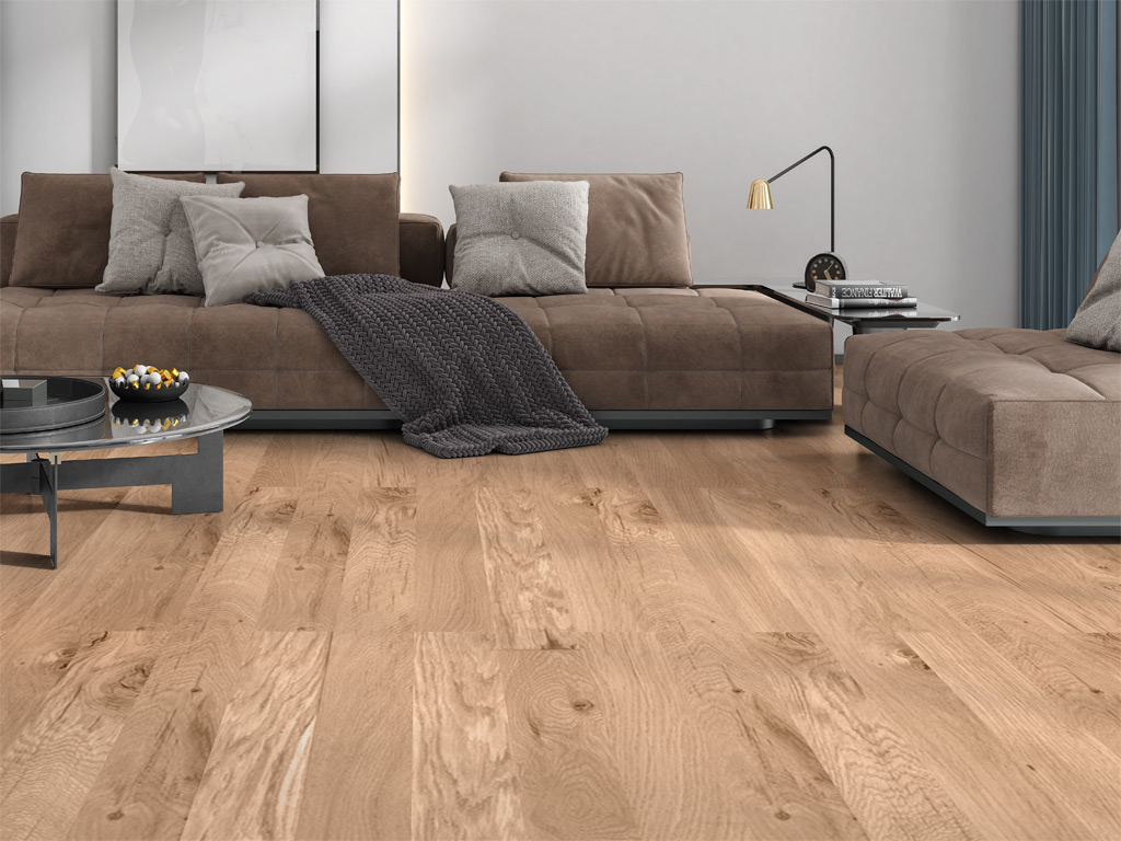 Le tri Pinhole se distingue par une caractéristique très vivante et souligne le caractère naturel du sol. Le sol présente un veinage expressif et un classement très vif. Les minuscules trous sont causés par des insectes du bois frais qui meurent complètement au cours du processus de séchage et sont typiques selon l'essence de bois. Les trous restants ne constituent pas un défaut de qualité et donnent au sol un charme très rustique.
