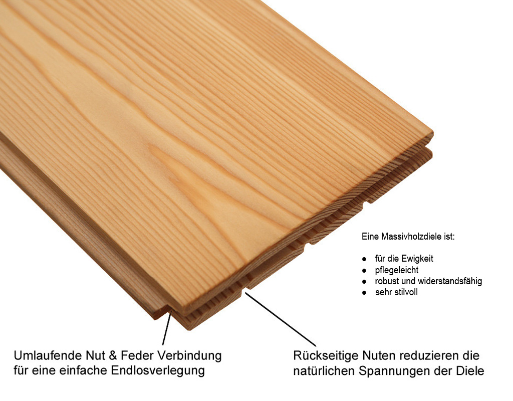 Le chanfrein périphérique sur les quatre côtés structure l'aspect de la pose et lui confère un motif régulier. Les huiles naturelles de haute qualité utilisées pour le traitement de surface laissent le bois respirer et le protègent. Avec la surface poncée, les creux dans la lame sont parfaitement compensés. Le sol devient ainsi parfaitement plat.