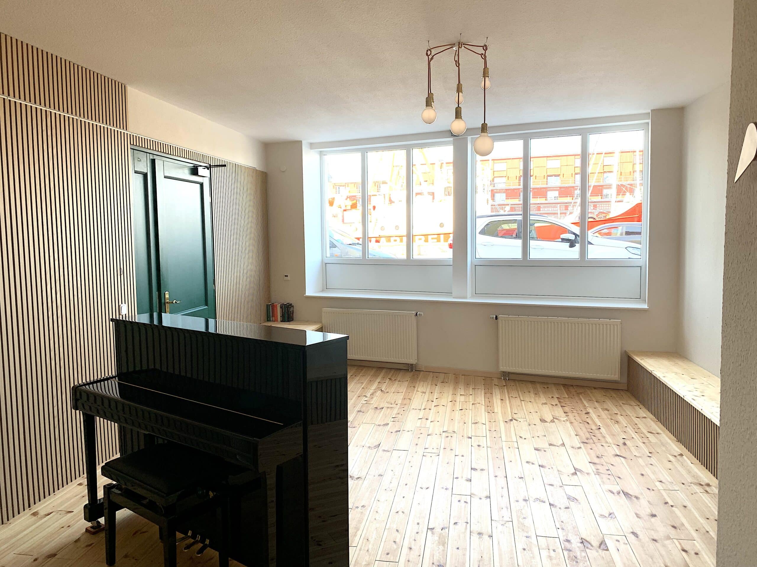 Si, pour une matière première comme le bois, on aime l'une ou l'autre irrégularité naturelle, on peut utiliser ce bois complètement. Nous n'avons rien trié. La pose a très bien marché. Enfin, nous avons traité le bois avec une huile pigmentée blanche - il est devenu fantastique.