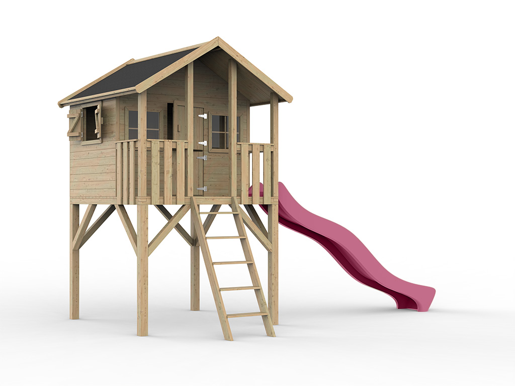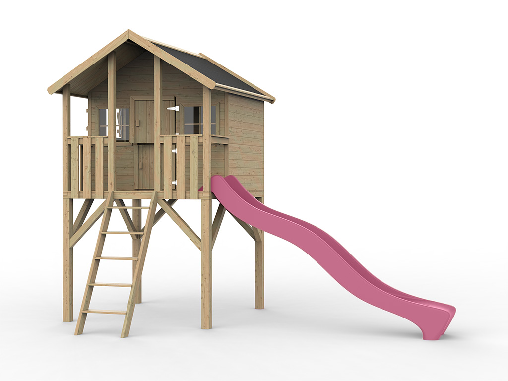 Maison d'pilotis Big House KDI y compris toboggan roseCabane de jardin sur pilotis Big House KDI inc