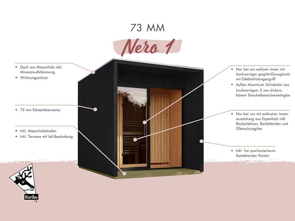 Maison de sauna Nero 1, 73 mm, naturel