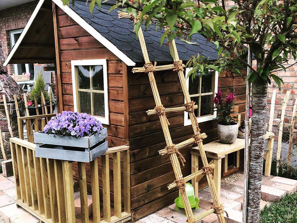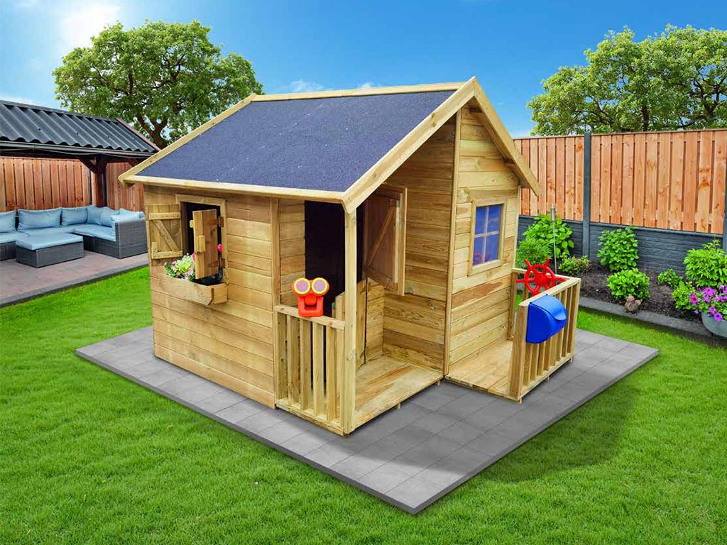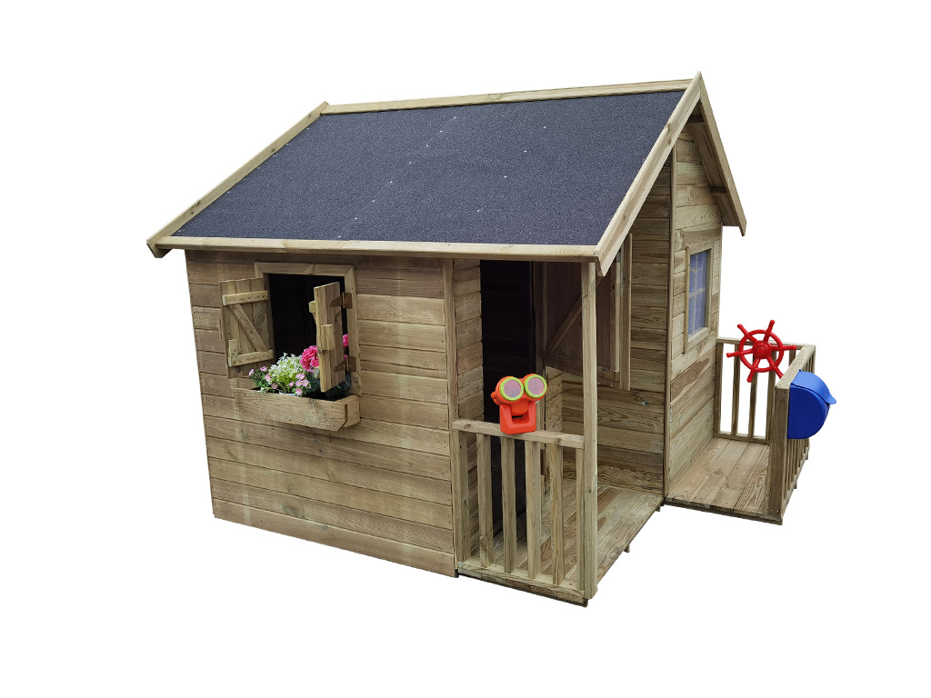 La maisonnette peut être complétée par de nombreux accessoires, tels qu'une boîte aux lettres, un téléphone de jeu ou un volant, selon les souhaits de vos enfants. Dans tous les cas, nous vous recommandons de recouvrir le toit de bardeaux fonctionnels et décoratifs. Consultez notre large gamme d'accessoires. - Montage simple et rapide