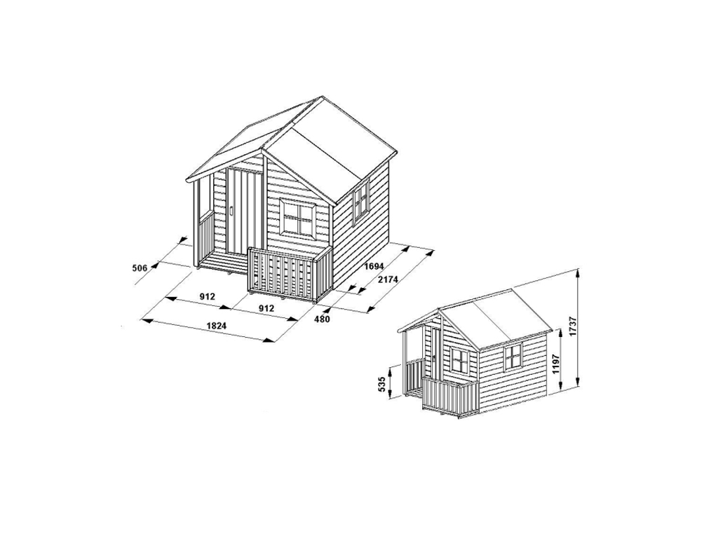 | Dimensions extérieures sans débord de toit (l x P): | 182,4 x 169,4 cm |