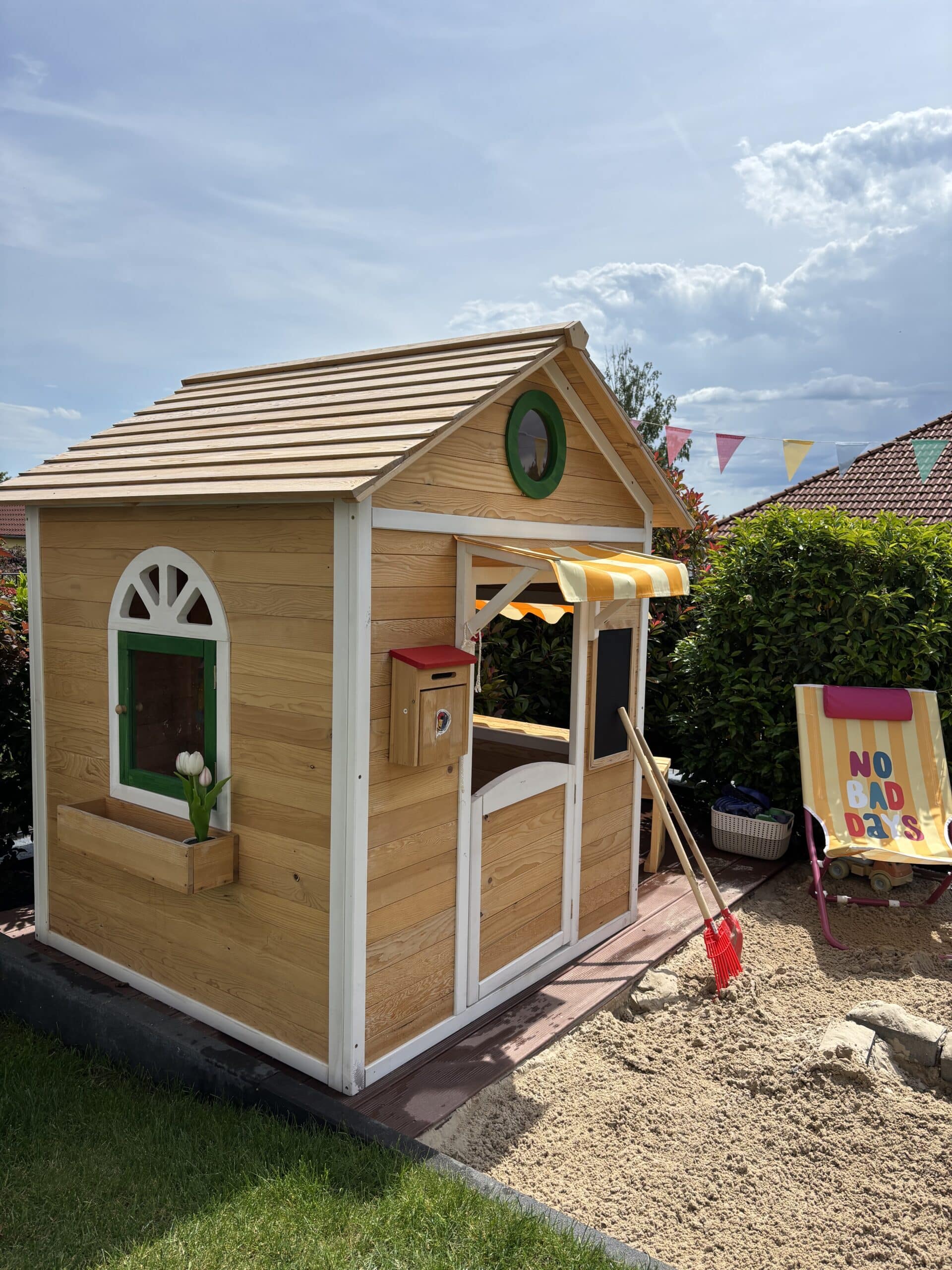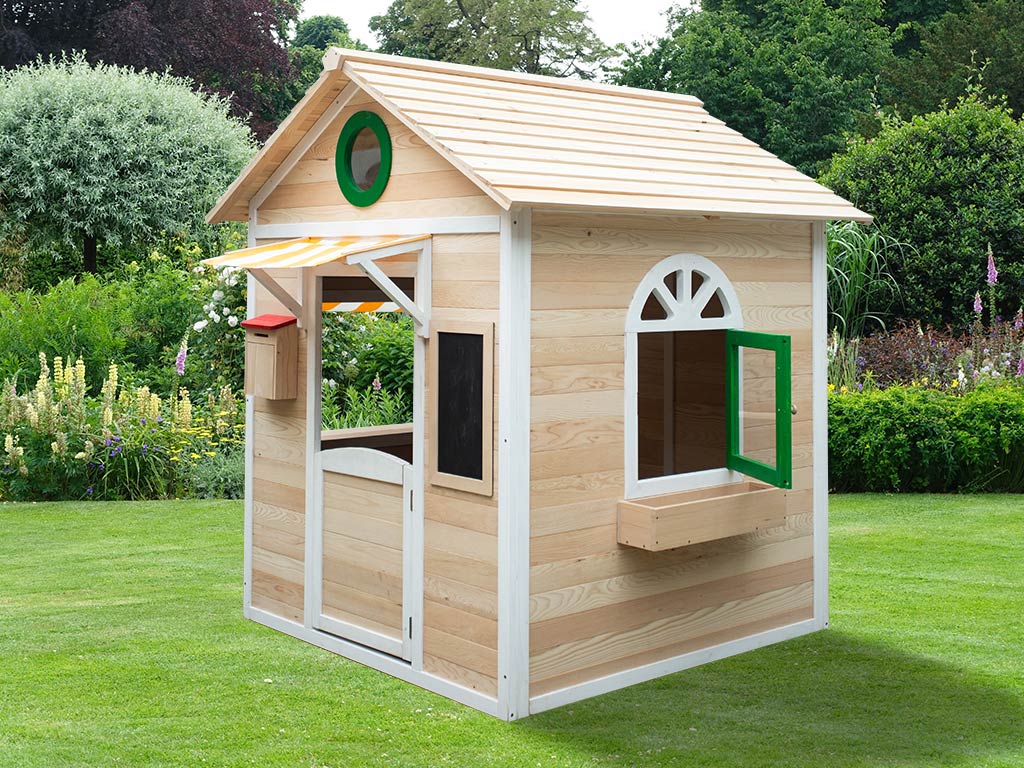 Pour encore plus de plaisir, la maisonnette est équipée d'une boîte aux lettres, d'un tableau à craies et d'un bac à fleurs sous une fenêtre. - Montage simple et rapide