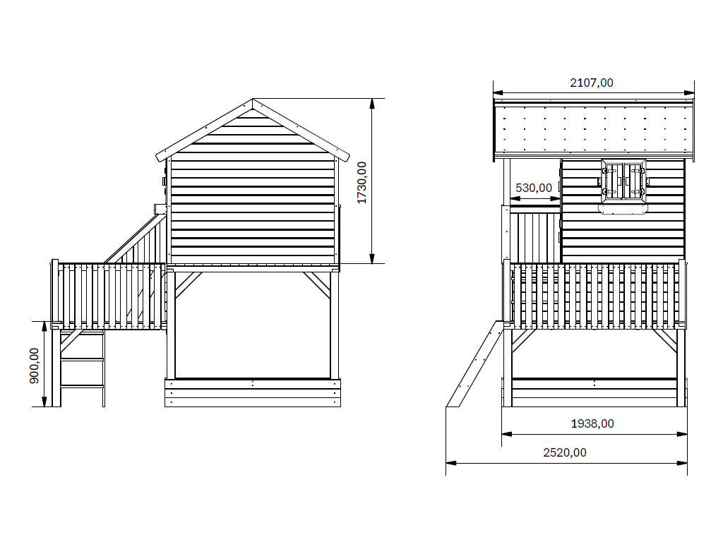 Fabriquée en planches de pin traité sous pression à rainure et languette, cette cabane sur pilotis est particulièrement résistante aux intempéries. Les planches du toit et du plancher ont une épaisseur de 19 mm, et les poteaux de soutien de 9 x 9 cm assurent une stabilité maximale. La cabane doit être ancrée au sol à l'aide d'ancrages (non fournis). Le toit, robuste, est livré sans couverture. Pour une meilleure durabilité et un aspect plus esthétique, nous recommandons de le recouvrir de bardeaux colorés ou d'une membrane d'étanchéité autocollante. Découvrez notre gamme d'accessoires. - Fenêtre et jardinière incluses