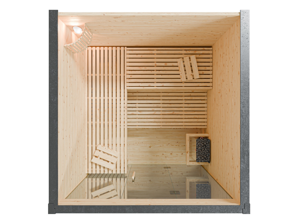 Avec 3 banquettes de repos, votre séance de sauna devient particulièrement confortable. Les bancs de sauna suivants sont fournis : 3 banquettes d’environ 55 cm de large.