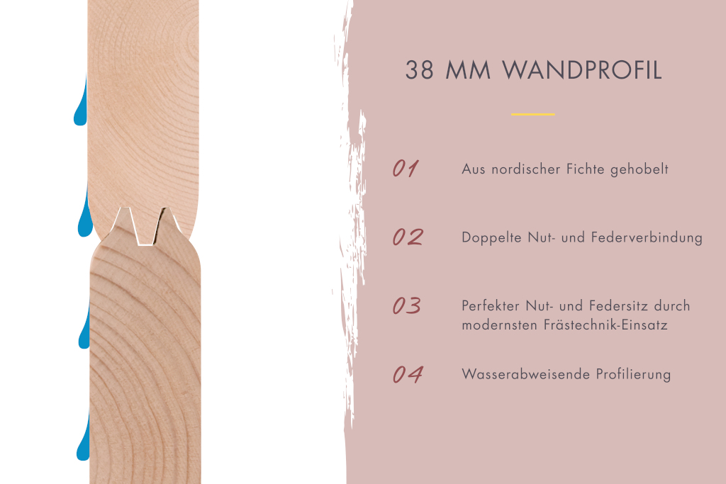 Les madriers en Épicéa nordique massif servent d’isolant naturel. Très largement exempts de nœuds et de résine et présentant un risque d’échardes réduit, l’épicéa est un bois idéal pour un sauna. Sa bonne capacité d’accumulation de chaleur permet de conserver longtemps des températures élevées et de les restituer de manière régulière. L’expérience absolument authentique d’un Sauna en bois massif est complétée par les résines naturelles et les huiles essentielles du bois, qui diffusent une agréable odeur typique.