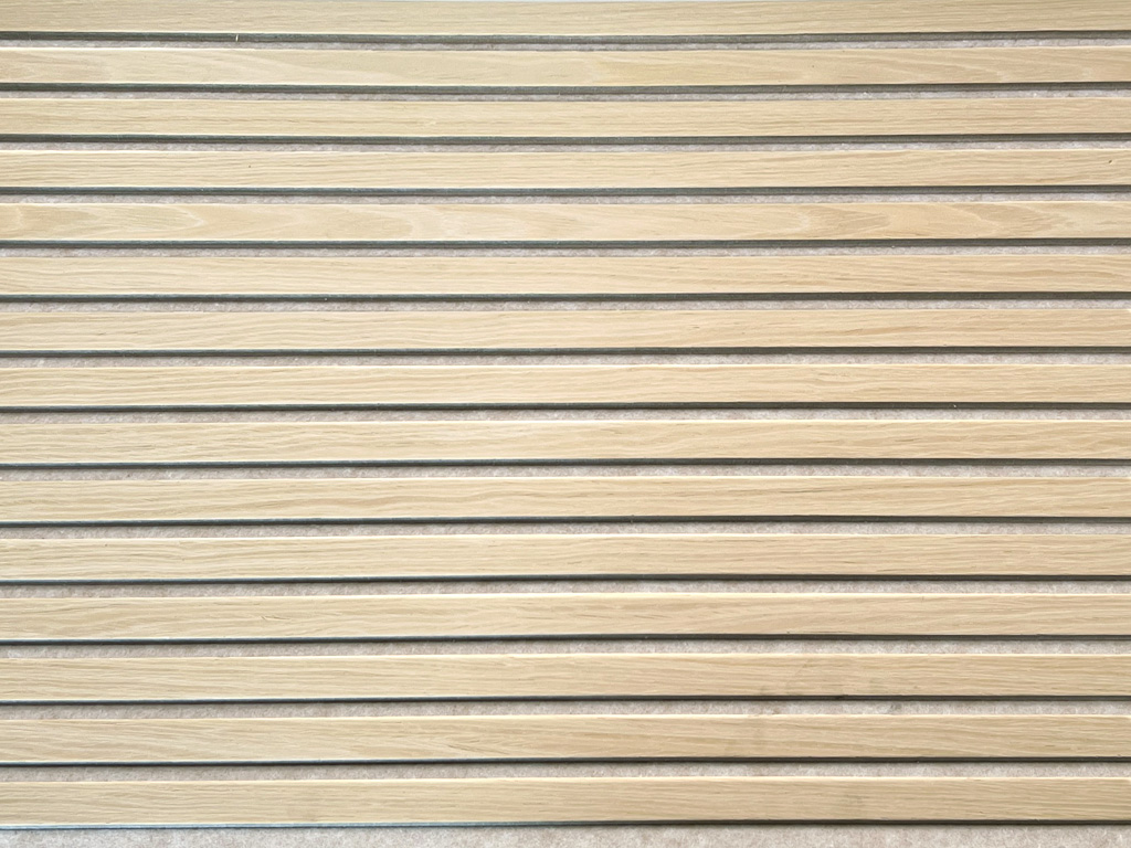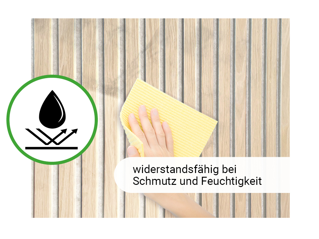 Les panneaux sont constitués d'une plaque de support unilatéralement plaquée en feutre noir, dotée de lamelles en MDF de 6 mm d'épaisseur. Cette structure particulière permet une régulation acoustique optimale et une atténuation de la réverbération.