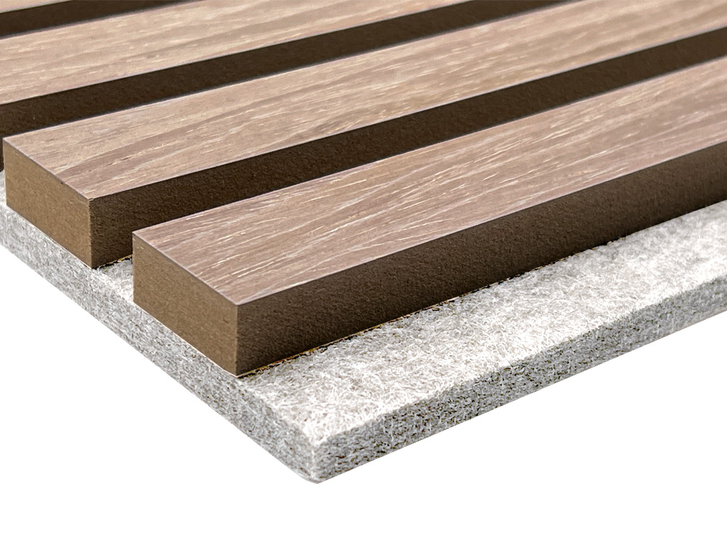 - L’utilisation de panneaux acoustiques (21 mm) dans une pièce complète permet une réduction du bruit d’env. 25 %, en fonction d’autres facteurs*