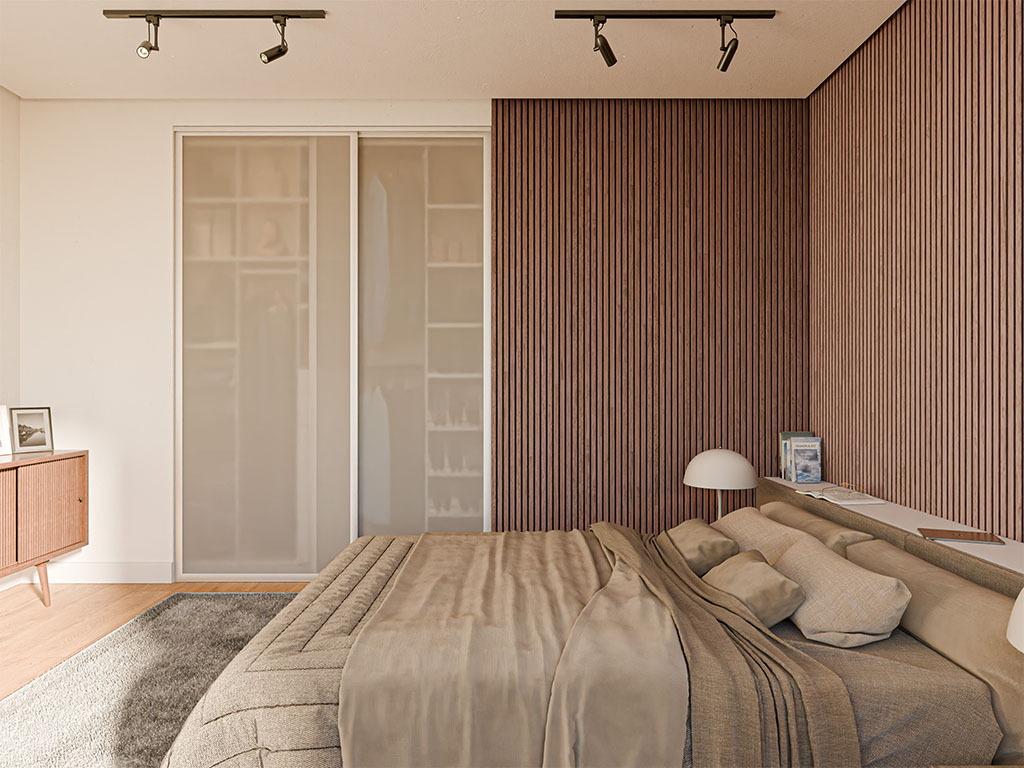 Panneaux acoustiques revêtement mural Walnut 120 cm feutre noir