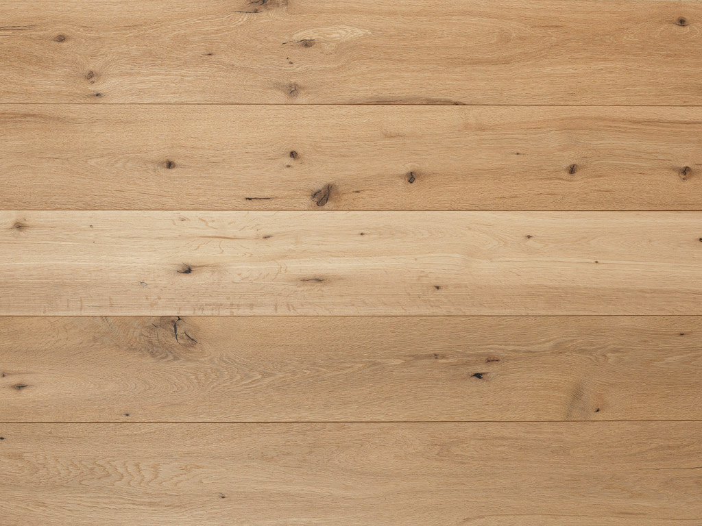 Parquet chêne à nœuds, aspect brut, lame large, brossé