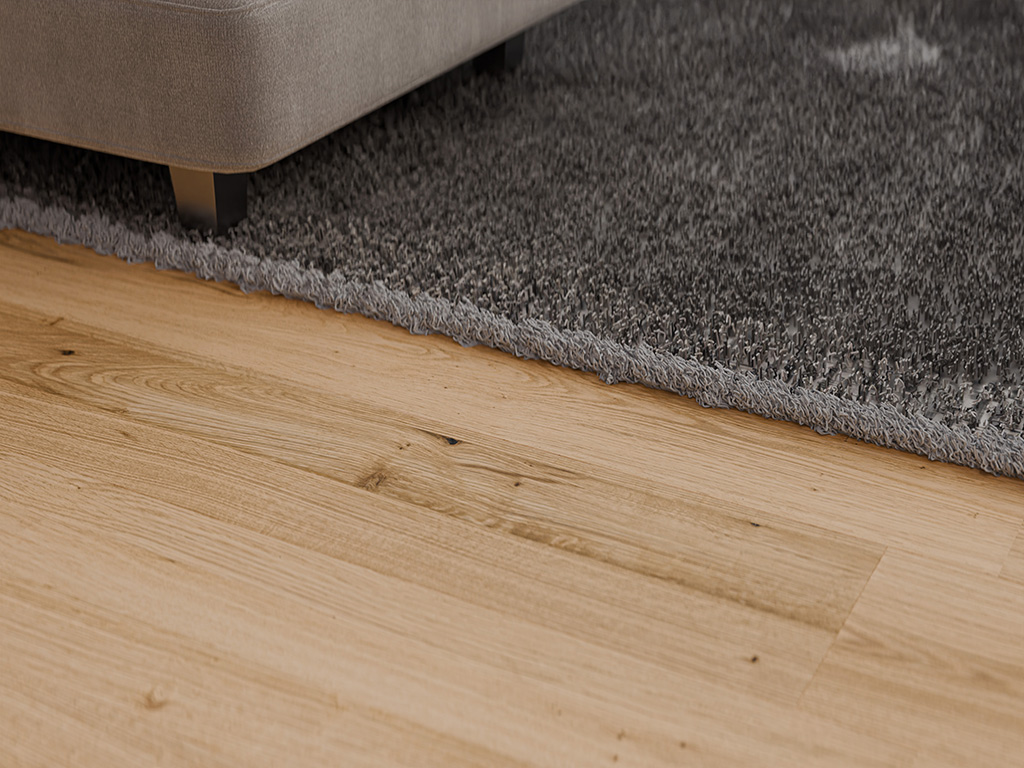 Les sols huilés sont immédiatement praticables après la pose. Pour les sols en bois traités à l’huile, il convient toutefois d’effectuer un traitement initial après la pose. Utilisez impérativement une huile d’entretien assortie à la teinte. L’huile confère au sol huilé une surface optimisée, anti-salissures, qui conserve sa beauté encore plus longtemps. Cette opération doit être renouvelée régulièrement selon les besoins. À chaque huilage, les couleurs du sol gagnent en intensité.