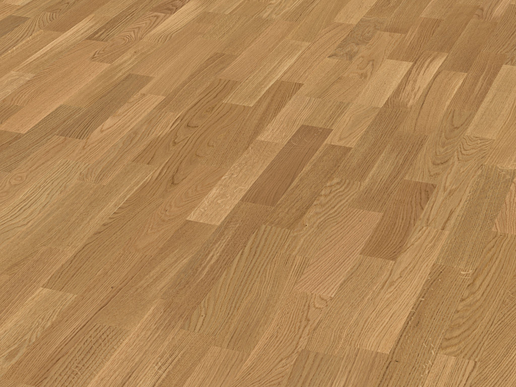 Le parquet à 3 couches est composé d'une couche supérieure en bois noble, d'une couche intermédiaire en MDF ou HDF, ainsi que d'une contre-face qui résiste à la déformation du bois en travail. Il possède une structure symétrique garantissant une stabilité dimensionnelle optimale, même en cas d'humidité élevée. Le parquet à 3 couches peut être installé en pose flottante à l'aide d'un système de clic. En principe, ce type de parquet peut également être collé de manière permanente.
