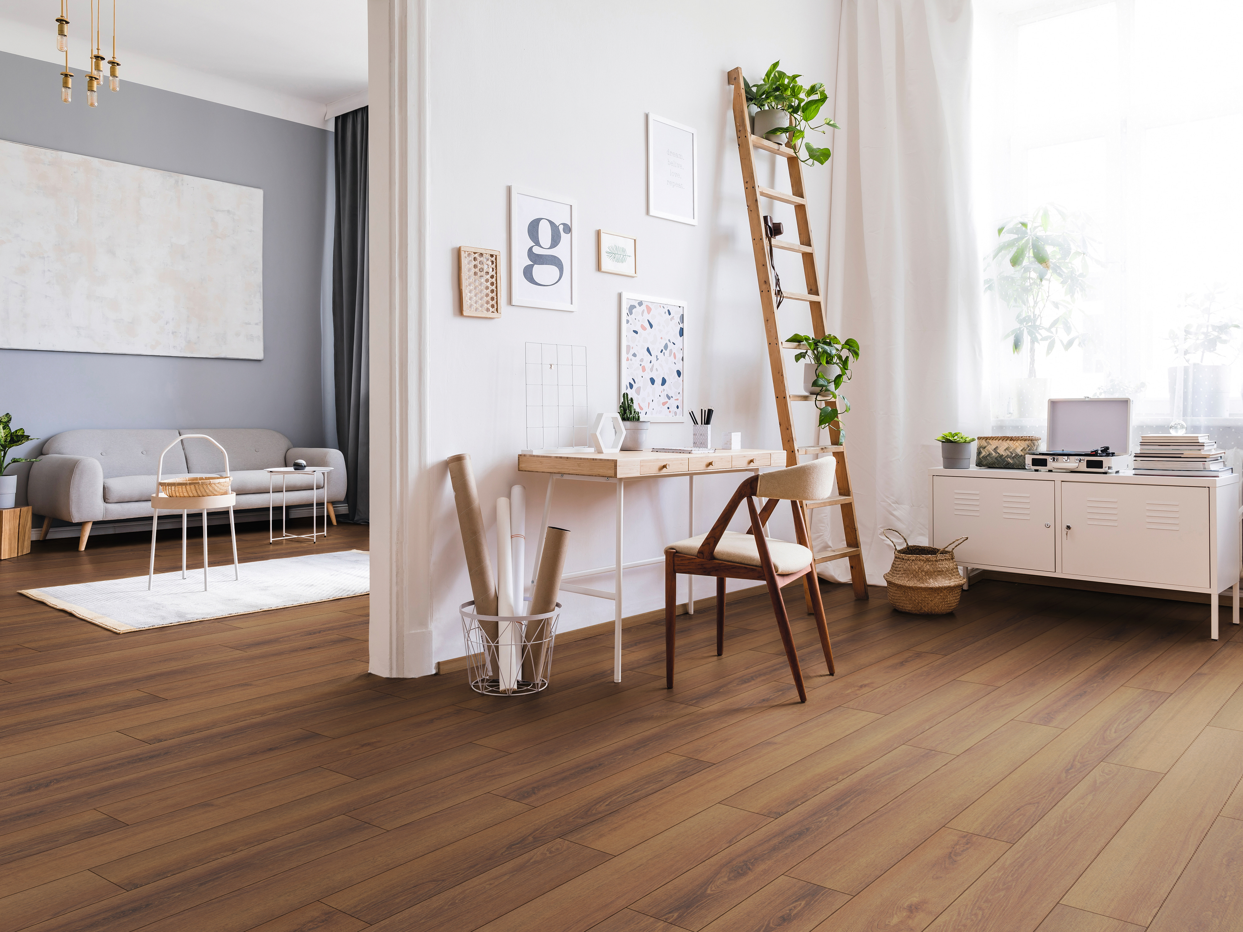 1288 × 195 x 7 mm, pose clipsable, convient aux pièces humides, aspect bois sur toute la surface, chanfrein sur les 4 côtés