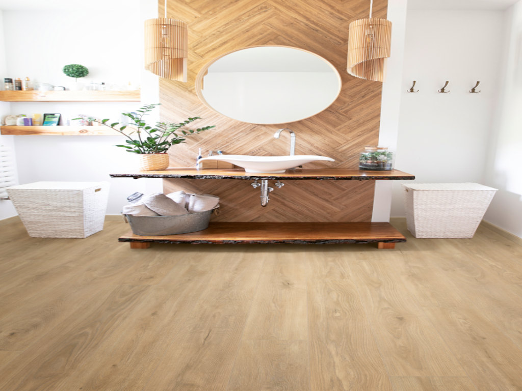 1288 × 195 x 8 mm, pose clipsable, convient aux pièces humides, aspect bois sur toute la surface, chanfrein sur les 4 côtés