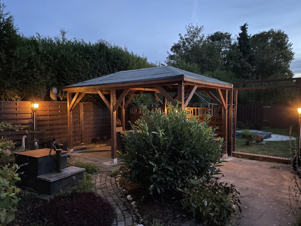 J'ai remplacé les vis standard de la livraison contre des vis en acier inoxydable pour rendre le pavillon stable en permanence.