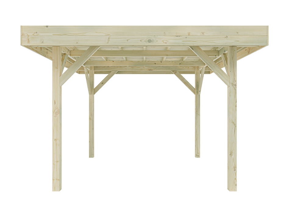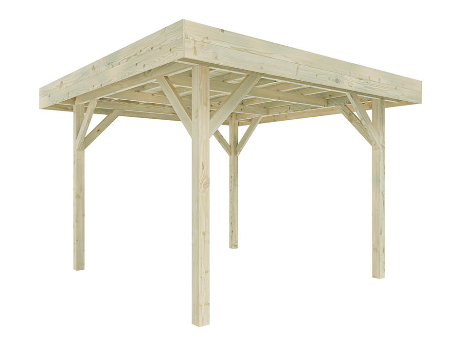 L x P x H : 356 x 356 x 244 cm, dimensions du socle L x P : 306 x 306 cm, épaisseur du poteau 11,5 x 11,5 cm.