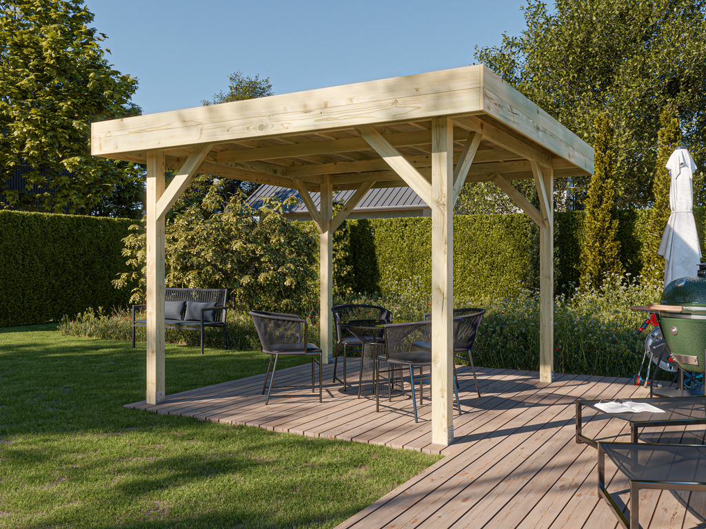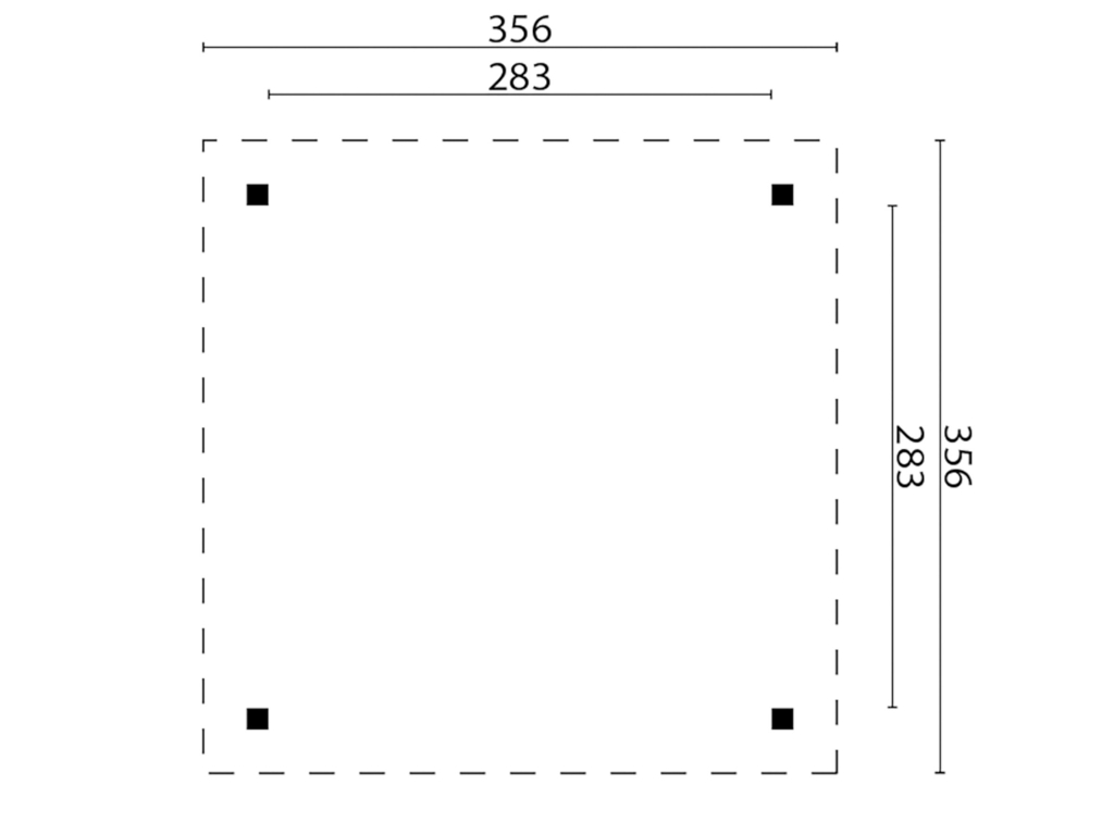 | Dimensions extérieures avec débord de toit (l x P): | 356 x 356 cm |