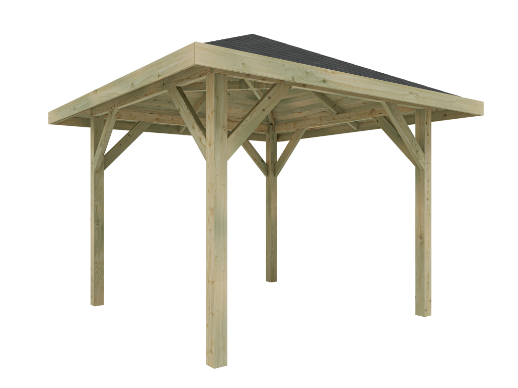 Le pavillon est fabriqué en bois de pin solide. De plus, l'imprégnation de haute qualité protège le bois de toutes les intempéries.