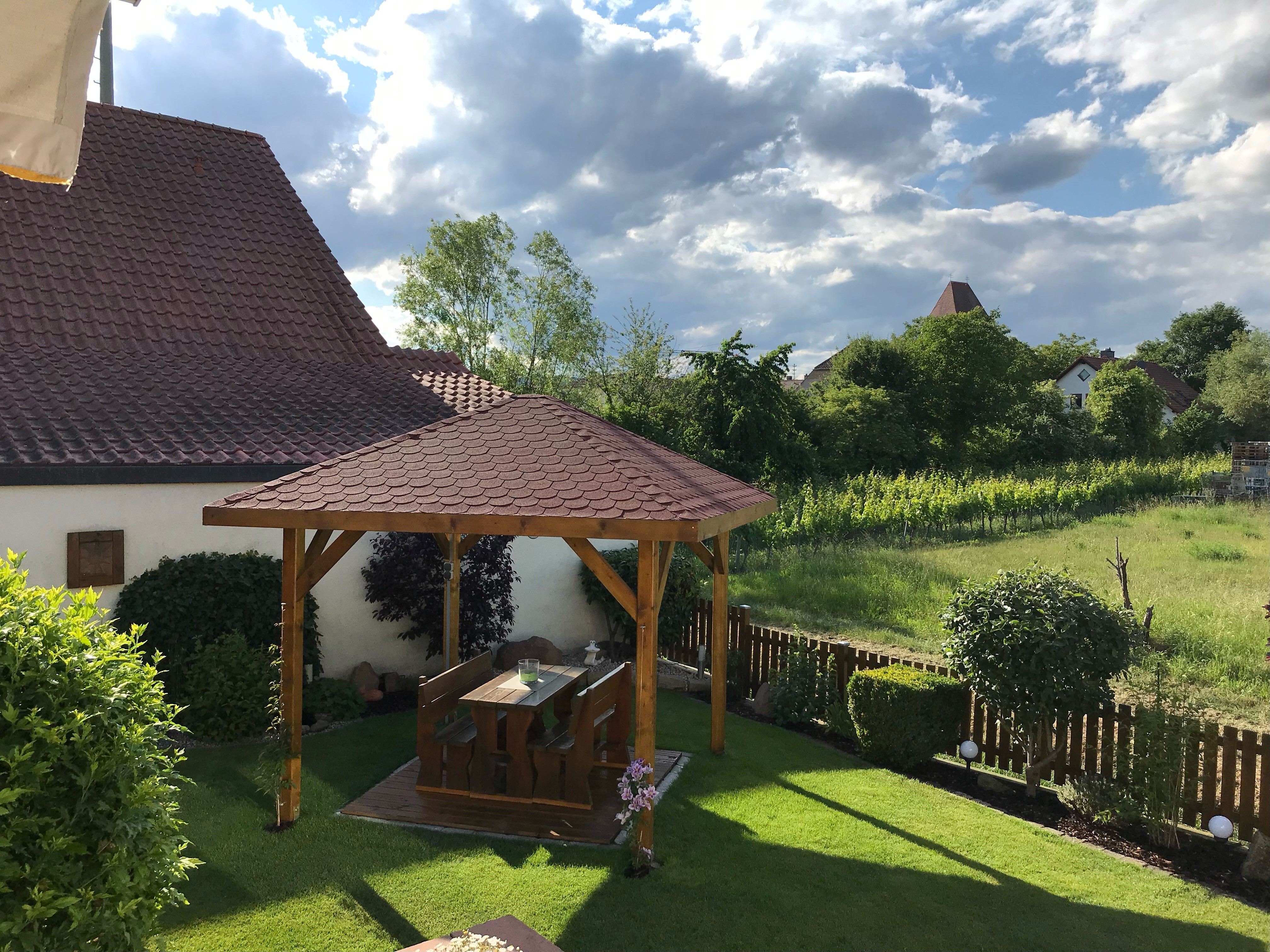 Le pavillon est fabriqué en bois de pin solide. De plus, l'imprégnation de haute qualité protège le bois de toutes les intempéries.