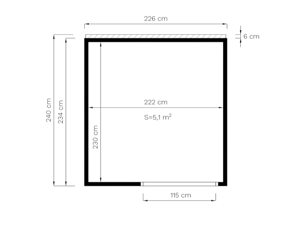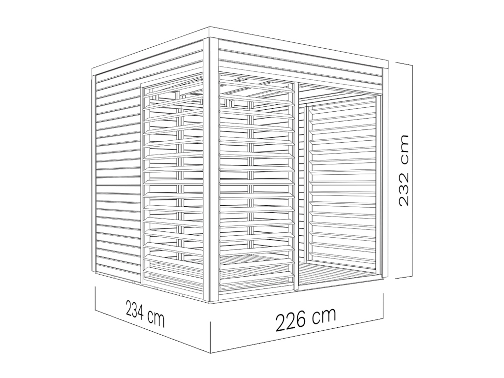 | Dimensions extérieures avec débord de toit (l x P): | 226 x 240 cm |