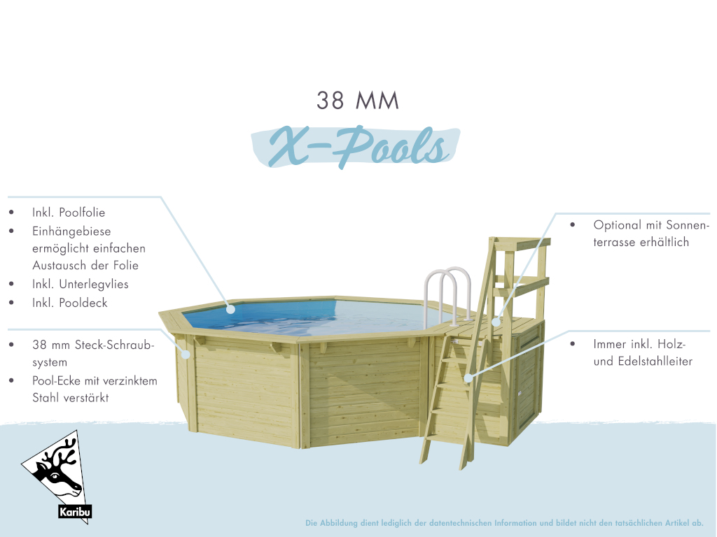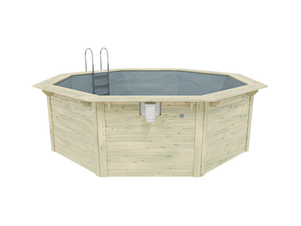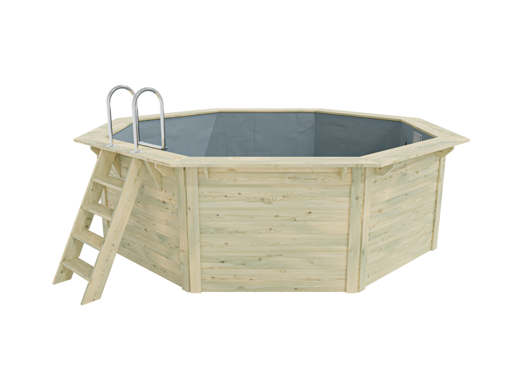 Les lames à composer traitées par autoclave, et donc résistantes aux intempéries, assurent la stabilité ; le revêtement intérieur avec un liner de piscine préfabriqué rend le bassin étanche. La piscine en bois massif Karibu marque des points grâce à sa construction robuste et son rapport qualité-prix. Vous devez toujours tenir compte des propriétés naturelles du bois. Un entretien régulier permet de prolonger la durée de vie et la résistance aux intempéries du bois.