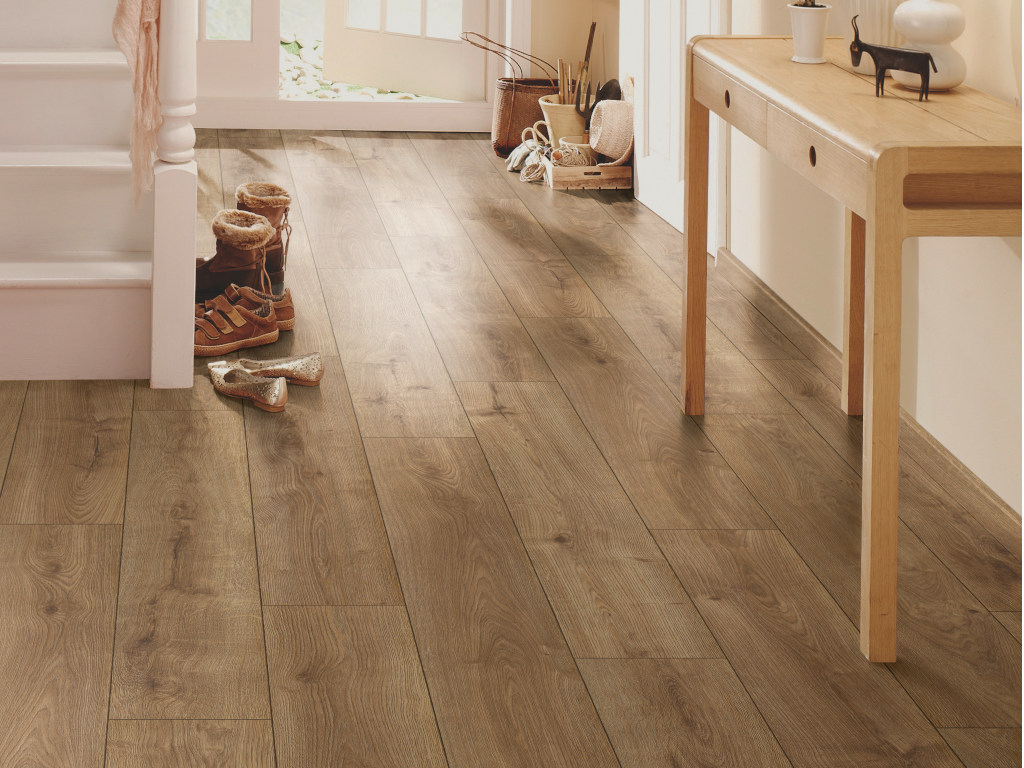 7 mm d'épaisseur, assemblage par clic, isolation intégrée, adapté aux pièces humides, structuré, chanfrein sur 4 côtés