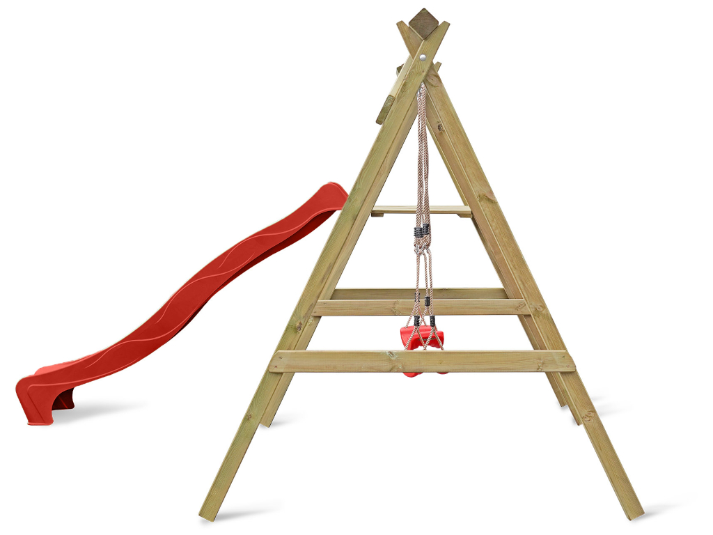 Le plaisir est garanti avec une balançoire - un incontournable de l'enfance. Se balancer est excitant et reste très populaire non seulement chez les enfants jusqu'à l'adolescence, mais aussi chez certains adultes. Et comme plus on est de fous, plus on rit, ce portique est équipé de deux balançoires, pour de nombreuses heures de plaisir partagé. L'âge recommandé pour les balançoires est de 3 à 12 ans, mais il n'y a pas de limite d'âge pour profiter du sentiment de légèreté et de liberté. Pour ceux qui ne veulent pas faire de compromis entre se balancer ou glisser, ce modèle est le bon choix, car il inclut un toboggan et 2 balançoires - pour un plaisir de jeu maximal. La hauteur de la plateforme est de 120 cm.