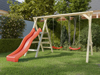 | Contenu de la livraison: | Balançoire double avec podium, 4 crochets de balançoire, 1 toboggan, 2 sièges de balançoire |