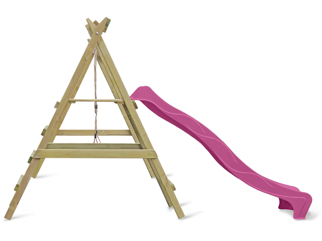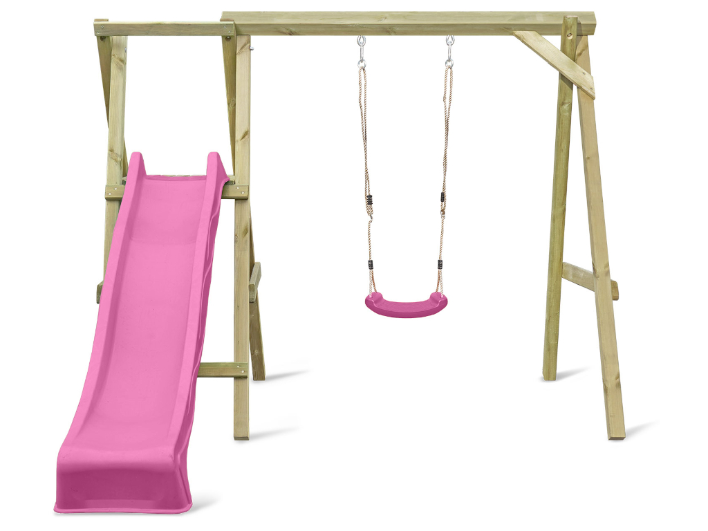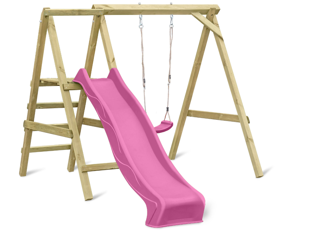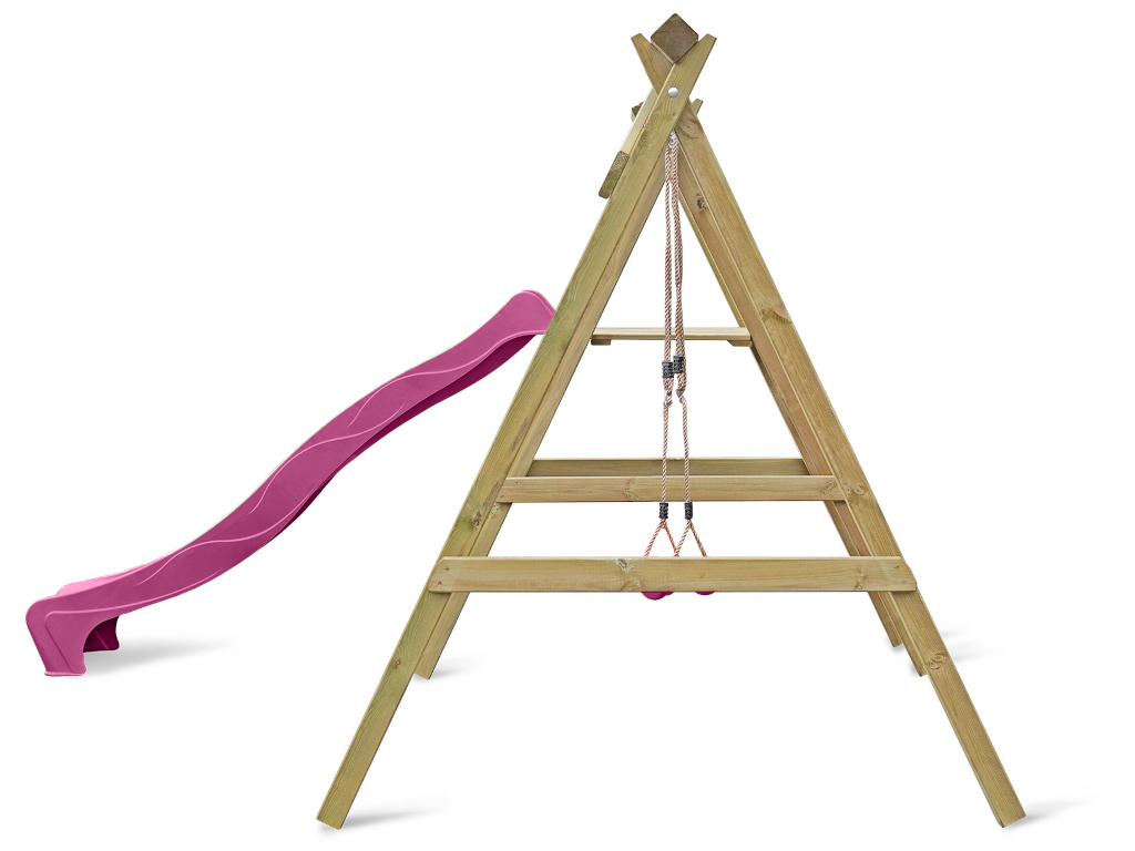 Portique simple avec plateforme Cosy Single avec toboggan + balançoire rose