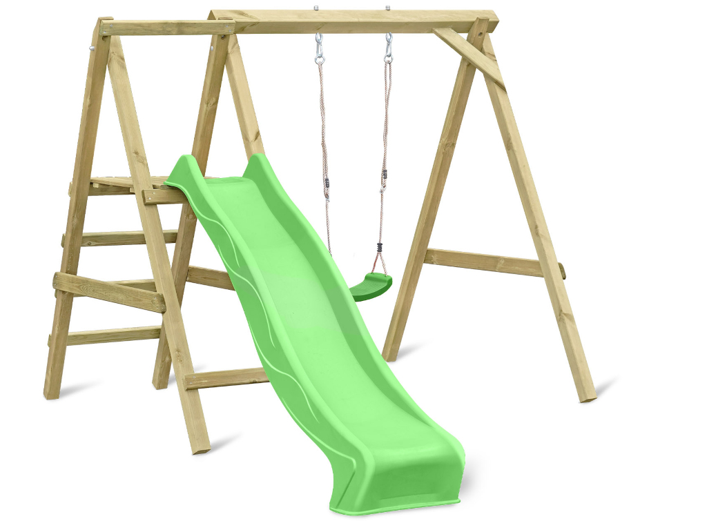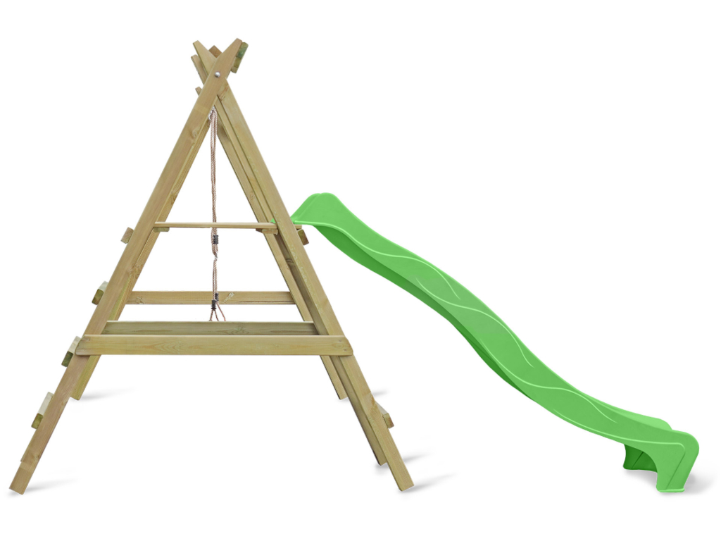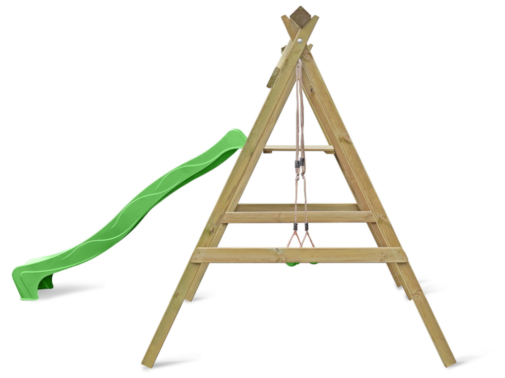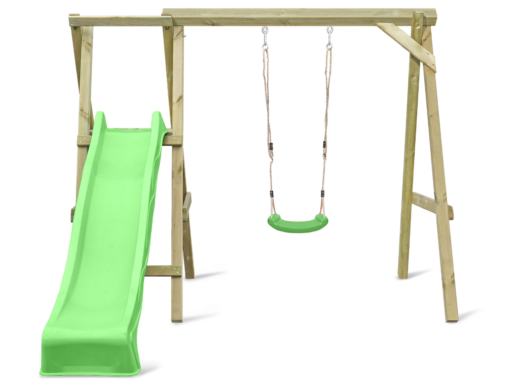 Portique simple avec plateforme Cosy Single avec toboggan + balançoire vert