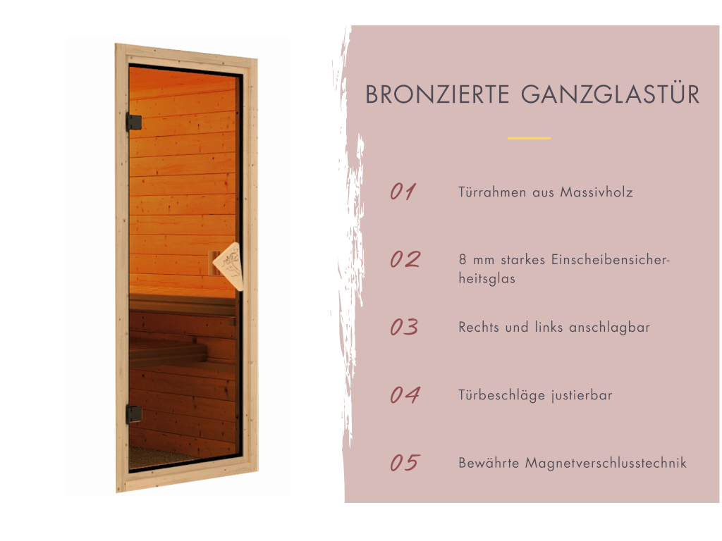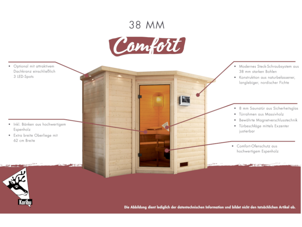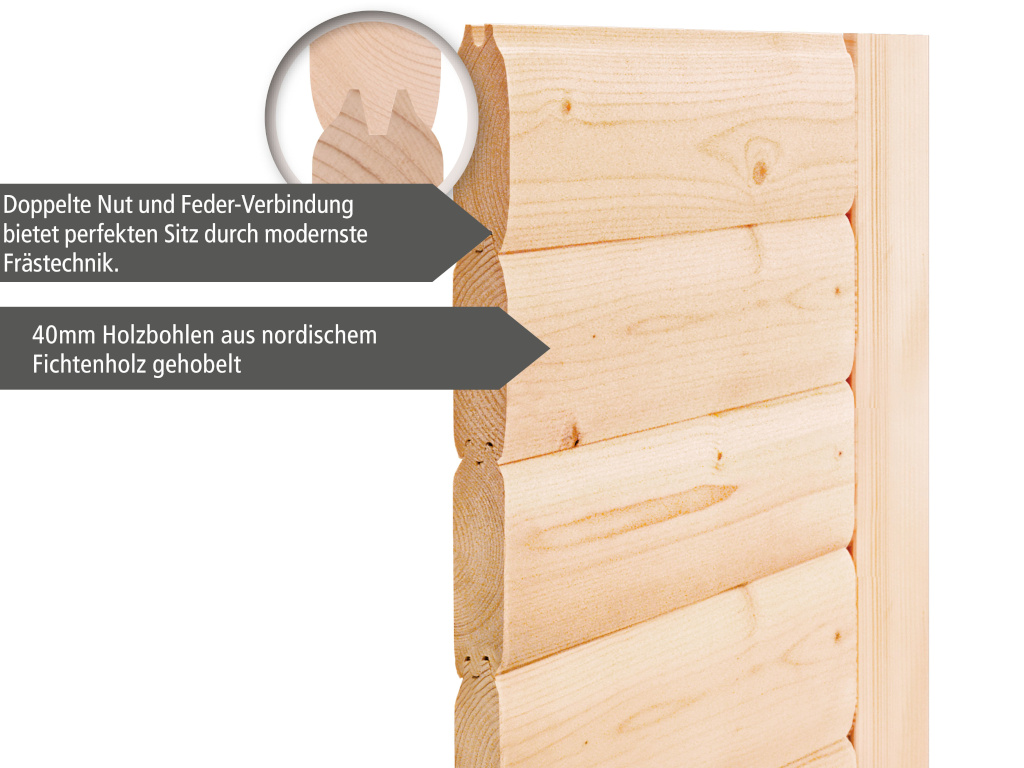 Sauna en bois massif KARIBU 38 mm « Ari »