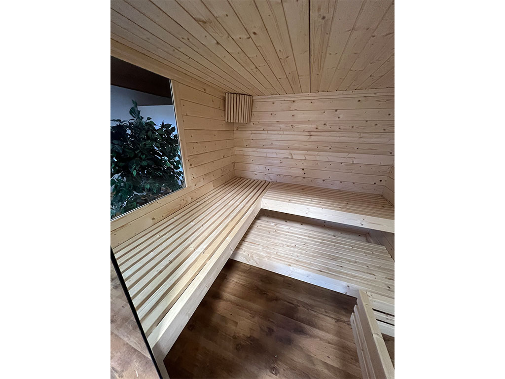 - Bancs de sauna : Avec 3 bancs, chaque utilisateur profite d’un confort optimal. L’équipement de base comprend les bancs suivants : 3 bancs