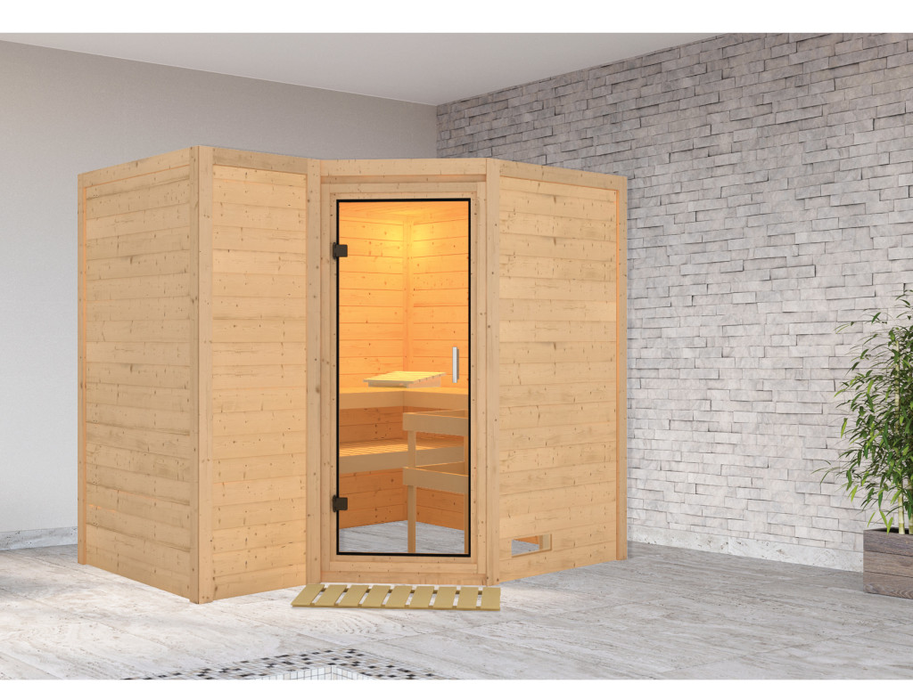 Karibu Sauna intérieur Betty set économique en bois massif pour 2-3 personnes avec poêle de 9 kW et appareil de commande Bio inclus