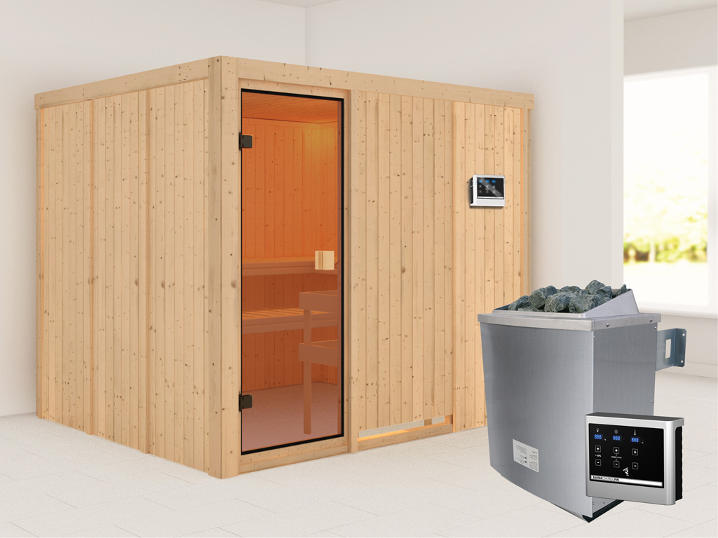 Sauna à éléments 68 mm Celine 6 SPARSET avec poêle de sauna 9 kW et commande externe