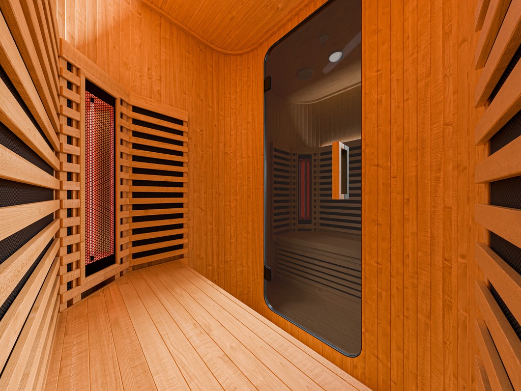 Cabine infrarouge SwedHeat Konrad Hemlock porte tout verre