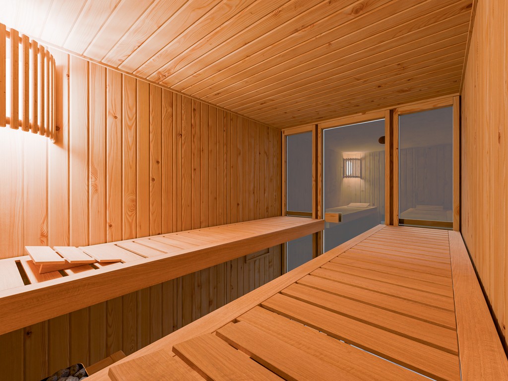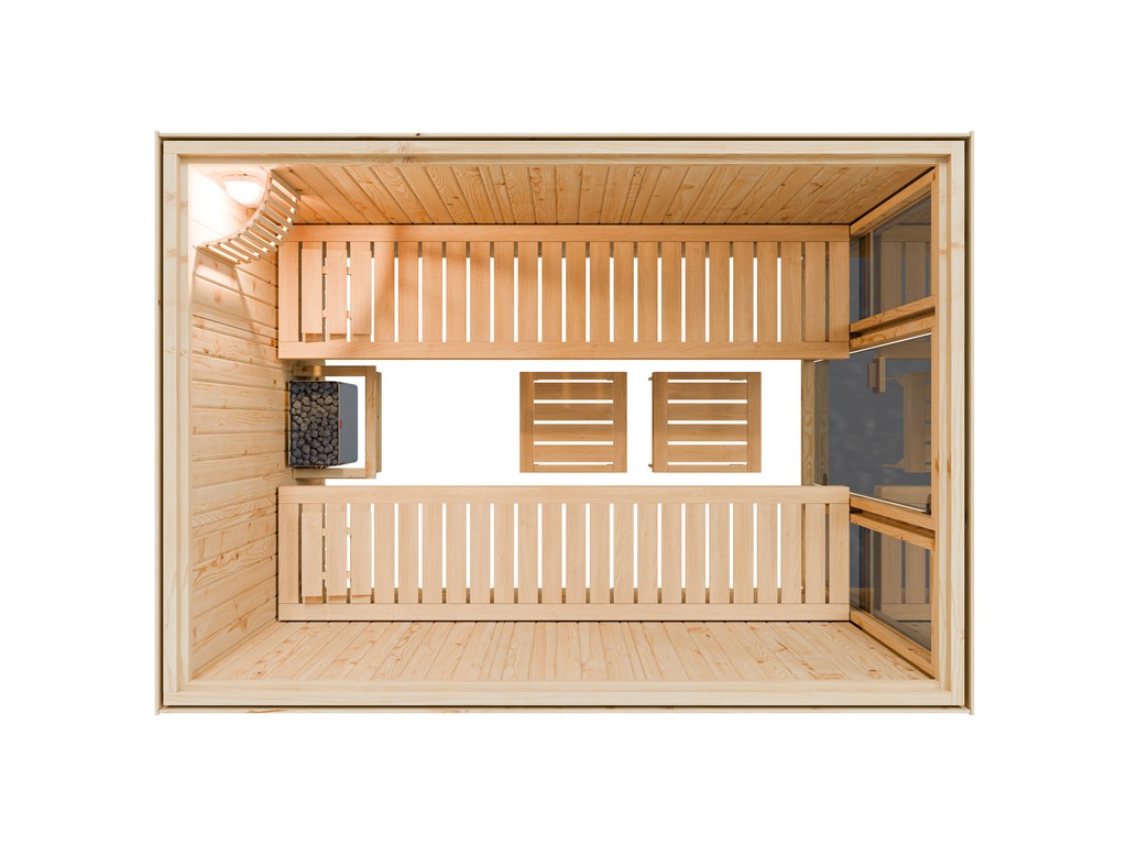 - Banquettes de sauna : Avec 2 banquettes, chaque utilisateur profite d’un confort particulièrement agréable. L’équipement de base comprend les banquettes suivantes : 2 banquettes d’environ 55 cm de large chacune (en bois de tilleul massif).