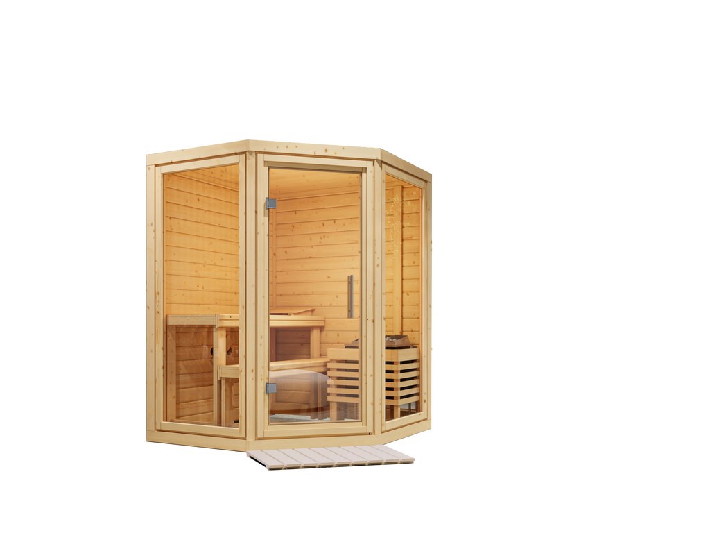 Sauna intérieur Yalda en bois massif avec porte entièrement vitrée
