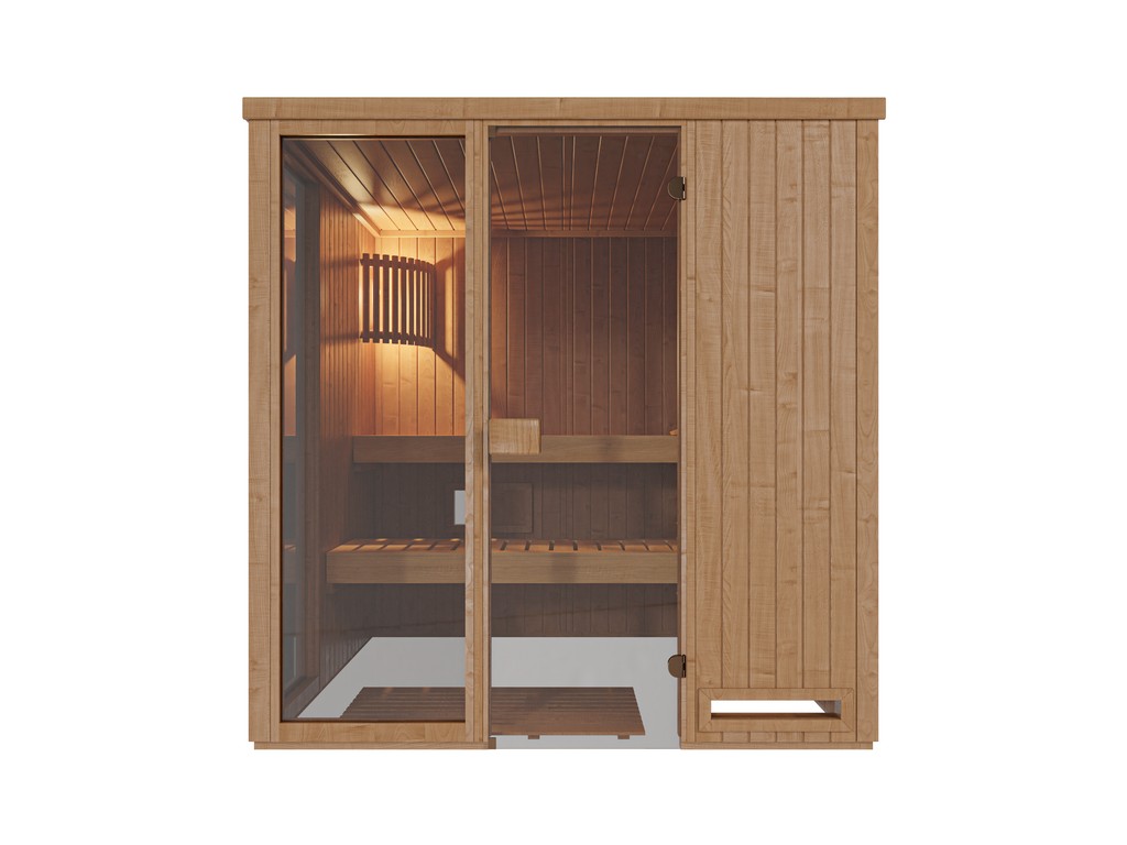 Entrée frontale : ce mode d’accès classique est particulièrement esthétique et très apprécié. De plus, l’entrée directe par l’avant permet d’arriver dans le sauna de manière spacieuse et agréable.