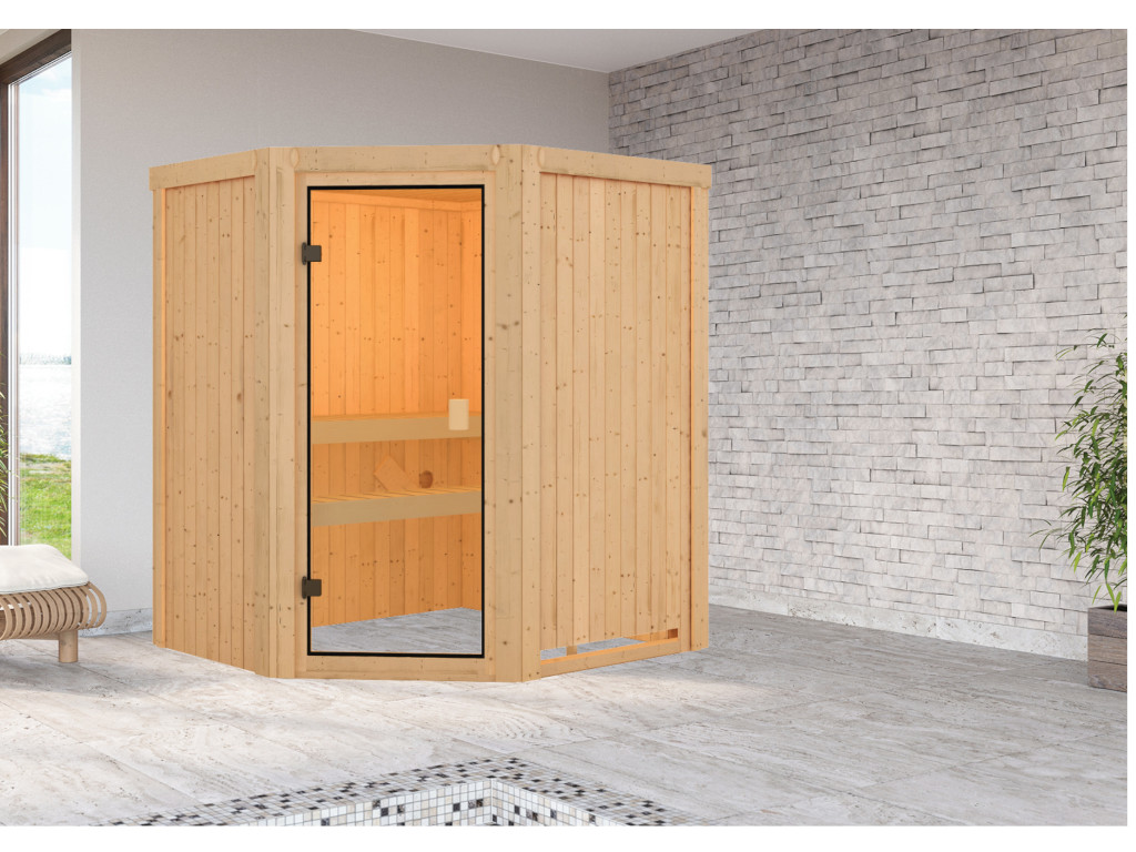 Sensation de bien-être même dans un espace réduit - avec ce sauna système de Karibu.