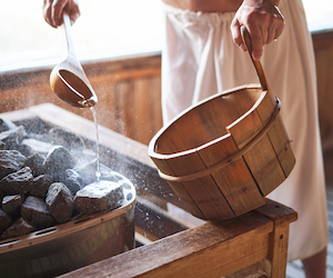 Un arrosage de sauna dans votre maison de sauna est une véritable expérience et une cérémonie bienfaisante. Vous remplissez un seau d'arrosage en bois avec de l'eau fraîche et ajoutez quelques gouttes d'un concentré d'arrosage de votre choix. Pour un petit sauna, il est également possible de remplir la louche d'eau et d'y ajouter quelques gouttes de concentré d'arrosage au lieu du seau d'arrosage. Important : Toujours mélanger l'huile d'infusion avec de l'eau avant de la verser sur les pierres du poêle du sauna, afin d'éviter qu'elle ne s'enflamme !