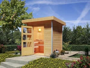 Un sauna de jardin à toit plat s'intègre particulièrement bien dans un jardin aux lignes épurées. Le toit ne prend pas beaucoup de place en hauteur. Cela peut être particulièrement important si vous disposez d'un grand nombre d'arbres dans votre jardin.