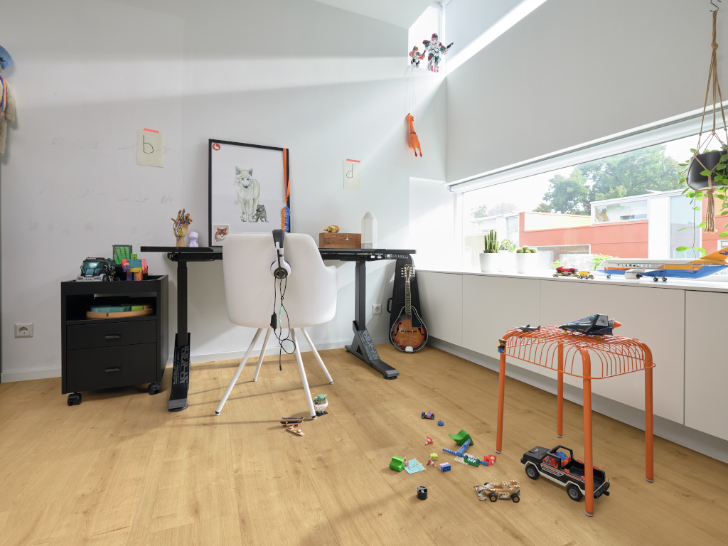 Épaisseur 8 mm, système clic 5G Dry, sous-couche intégrée, adapté aux pièces humides, structure poreuse, micro-chanfrein sur les 4 côtés