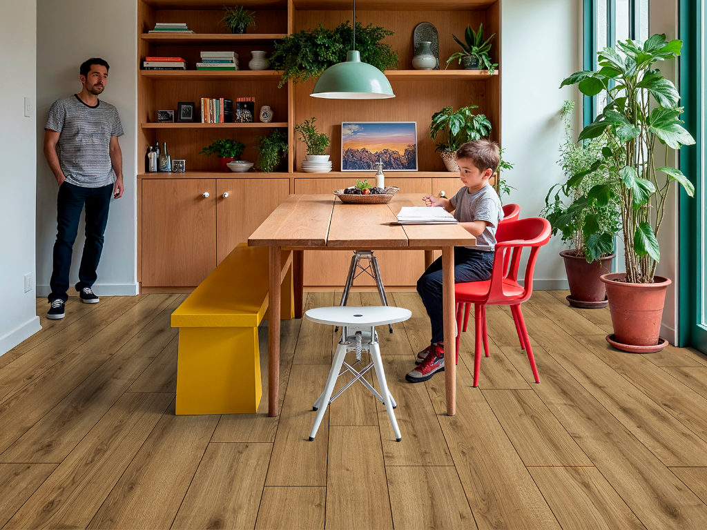 Sol design KRONOTEX « KIWI now » décor chêne, lame large, ép. 5,5 mm, système de clipsage, adapté aux pièces humides