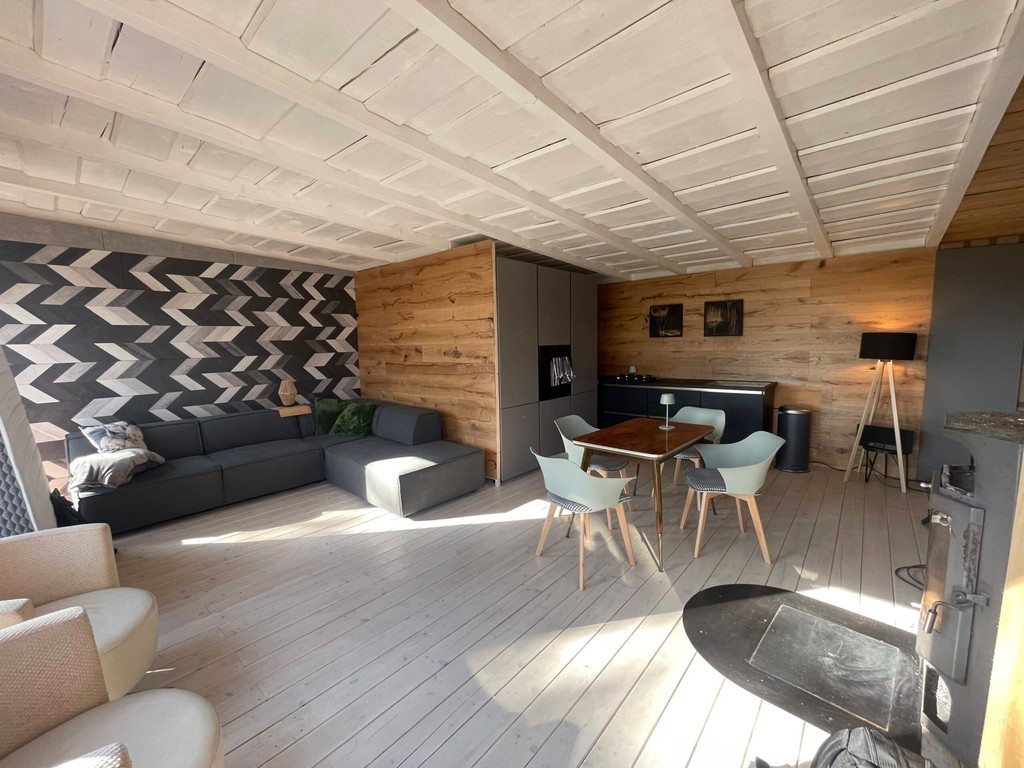 Le chanfrein en V sur les 4 côtés de la planche souligne le caractère rustique de la maison de campagne.